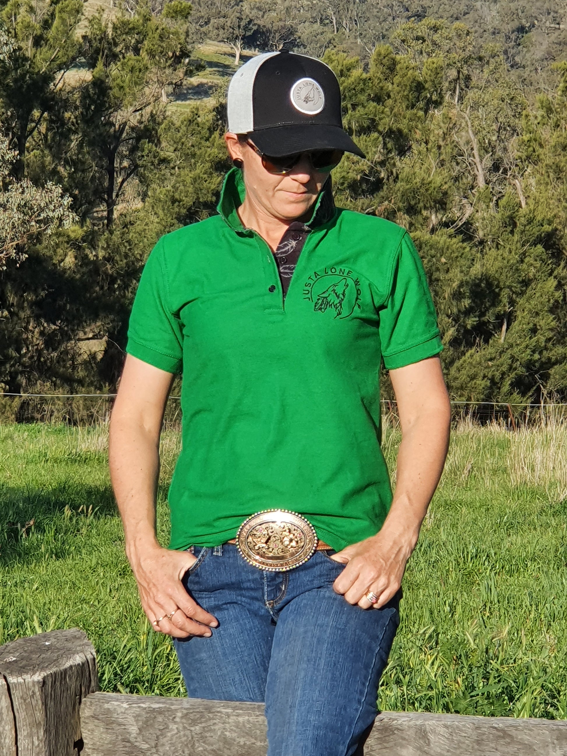 Justa Lone Wolf's Polo shirts are 100% cotton fabric with a contrast feather pattern under collar and buttons.